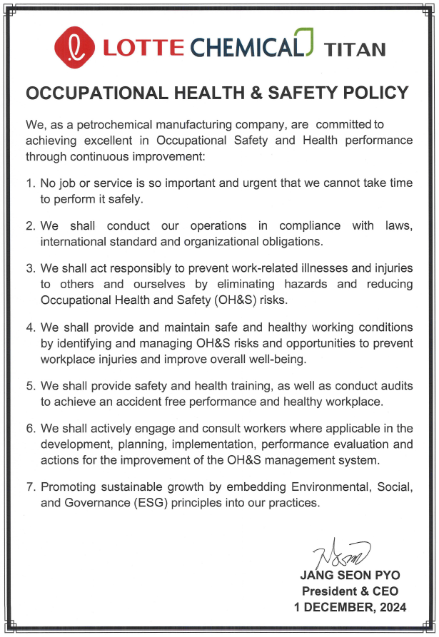 LOTTE Chemical Titan cares about the environment and continues to make our future and the globe greener.